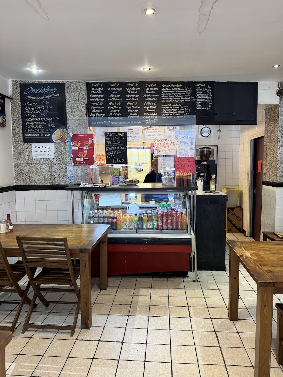 The menu leans heavily into classic English breakfasts—think generous servings of bacon, sausage, eggs (scrambled or poached), and the occasional black pudding for those curious enough to try it. Alongside these, grilled meats and roast options like lamb chops and beef bring a comforting, substantial edge that goes beyond your average cafe fare. Coffee takes its place just as seriously, with cappuccinos and lattes served in large cups, making it a spot favored by those who value their caffeine fix as much as their food.